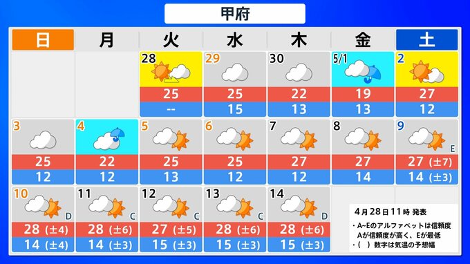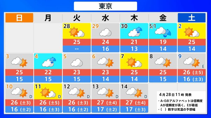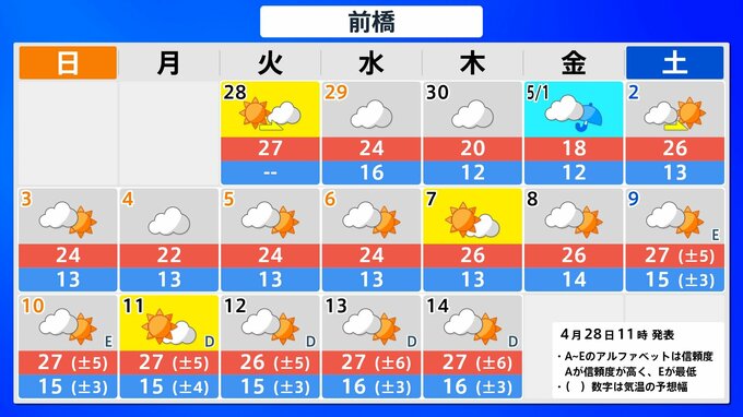 【気象情報】大型連休の各地の天気予報は?【県庁所在地47地点の16日間予報掲載】5月1日(金)前後と4日(月)前後で雨が降るところが多くなる見込み 2026年4月28日(火) 12:33 国内 関東甲信 県庁所在地の16日間予報