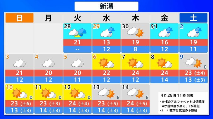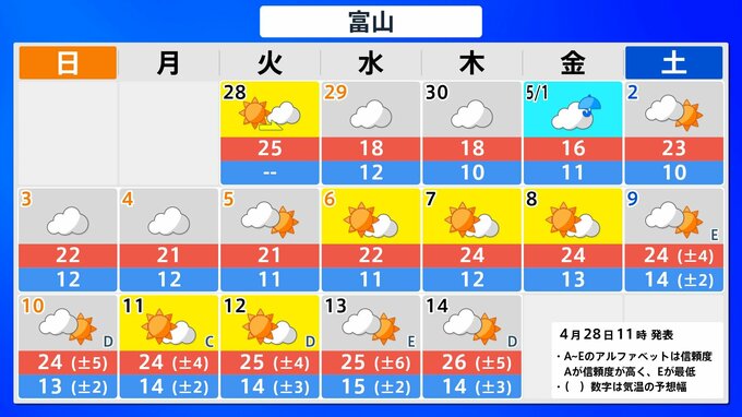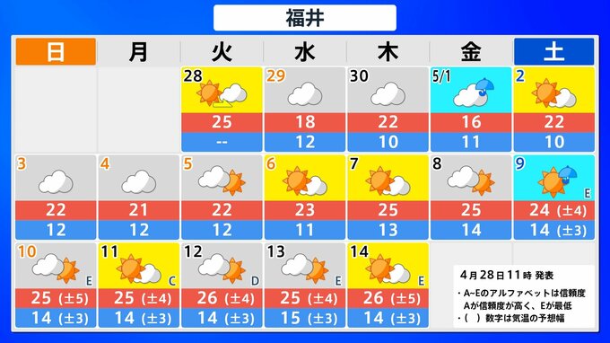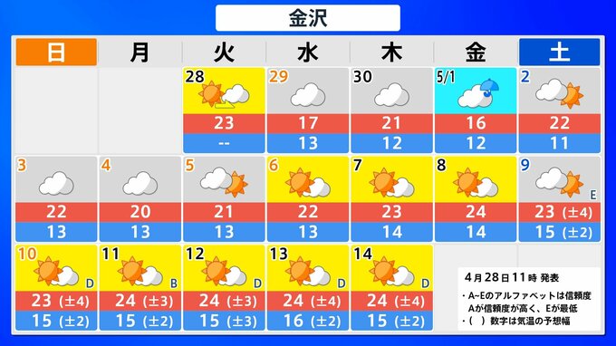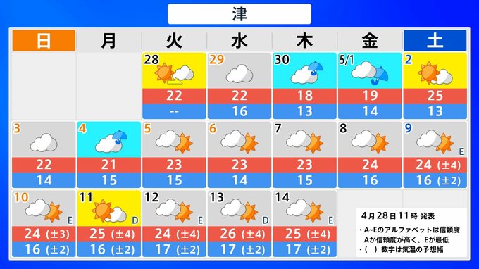 【気象情報】大型連休の各地の天気予報は?【県庁所在地47地点の16日間予報掲載】5月1日(金)前後と4日(月)前後で雨が降るところが多くなる見込み 2026年4月28日(火) 12:33 国内 東海・北陸 県庁所在地の16日間予報