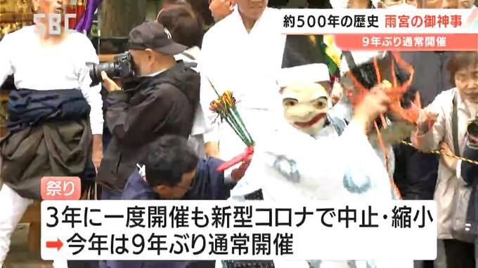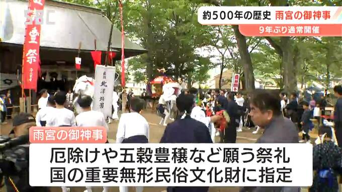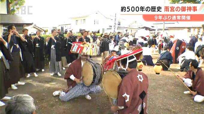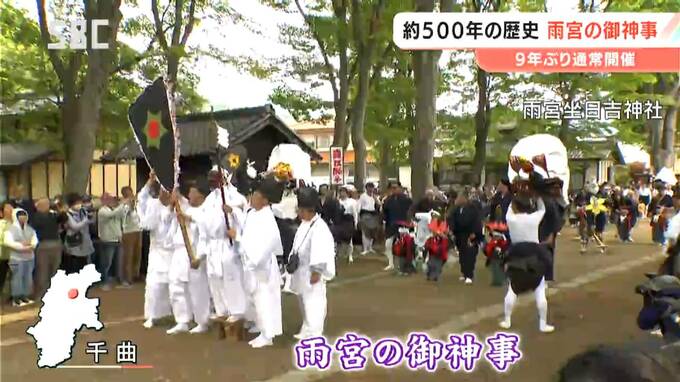 千曲市の雨宮(あめのみや)地区におよそ500年前から伝わるとされる祭礼、「雨宮の御神事(あめのみやのごじんじ)」が、コロナ禍での中止、縮小を経て9年ぶりに通常開催されています。