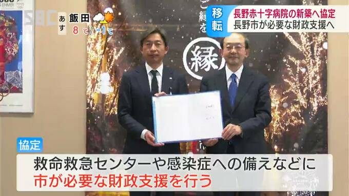 長野赤十字病院の建て替えで…長野市が必要な財政支援へ、基本協定を締結 2023年2月13日(月) 18:42 国内 長野赤十字病院の建て替えに、長野市が必要な財政支援を行うとする基本協定が結ばれました。締結式で、荻原健司長野市長と長野赤十字病院の和田秀一院長が協定書に署名しました。協定では、長野赤十字病院の移転・…