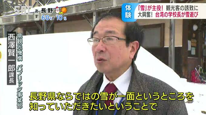 (県観光機構パブリック事業部・西澤賢一郎課長)「長野県ならではの雪が一面というところを知っていただきたいということで、雪のないところにとっては魅力あるものなのでこういった時期に誘致出来たらと思っています」