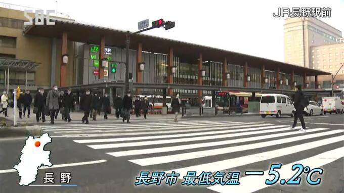氷点下5.2度まで気温が下がった長野市では、厚手のコートやマフラーを身に着け、通勤や通学をする人たちの姿が見られました。