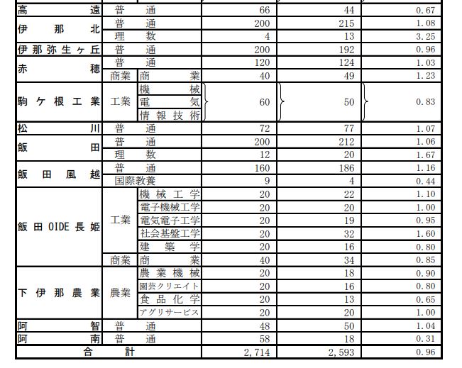 【長野県公立高校入試】後期選抜「志願者数」「倍率」…【高校一覧】