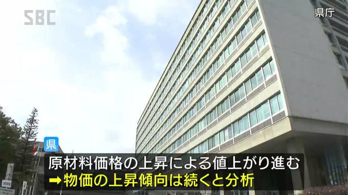 1981年の第二次オイルショック以来の物価の伸びが続いていますが、県では「原材料価格の上昇による値上がりが進んでいることから、物価の上昇傾向は続くのではないか」と分析しています