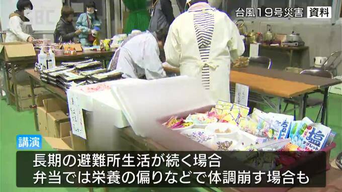午前中は講演が行われ、2019年の台風19号災害など、長期に渡って避難所生活が続く場合、一般的な弁当では栄養が偏ったり冷たかったりするため、高齢者が体調を崩すといった課題が報告されました。