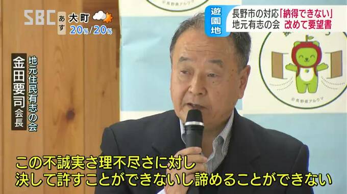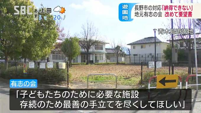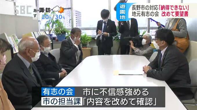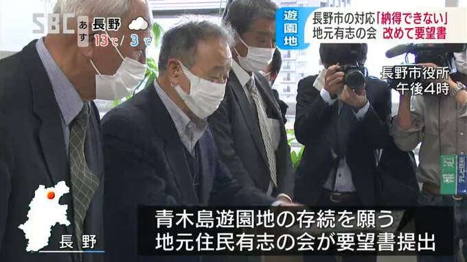 長野市が廃止を表明した公園の問題で、住民の団体が市に、改めて存続を求める要望書を提出しました。