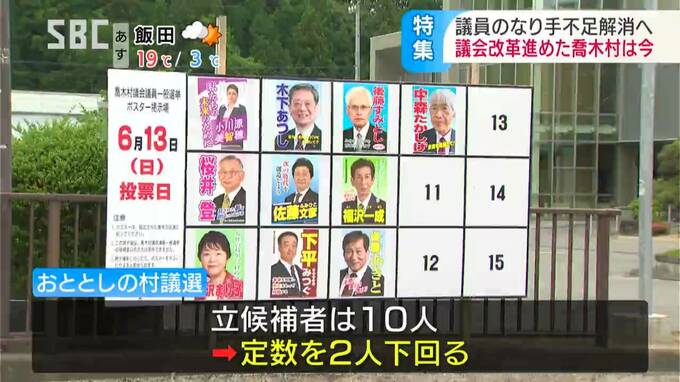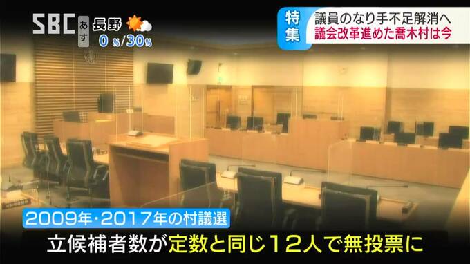 2009年と17年の村議選では、立候補者の数が定数と同じ12にとどまり無投票となりました。