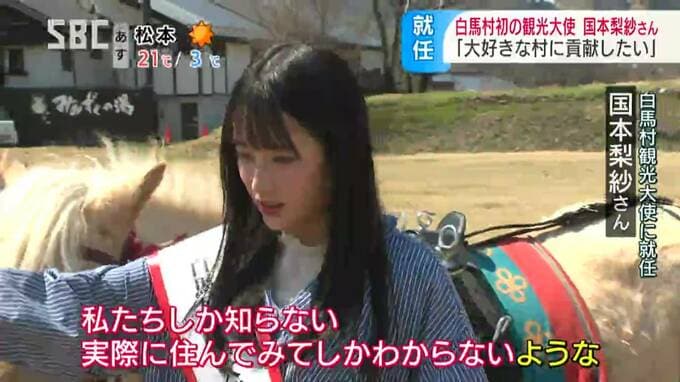 白馬村で初めての観光大使に就任した村出身のタレント・国本梨紗(くにもと・りさ)さんが、「自分たちだけが知っている魅力を発信したい」と抱負を語りました。