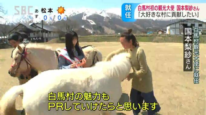 白馬村初の観光大使に選ばれた国本さんは16歳までを村内で過ごし、現在は朝の情報番組やバラエティ番組など5本のレギュラーを持ち、広く活躍しています。