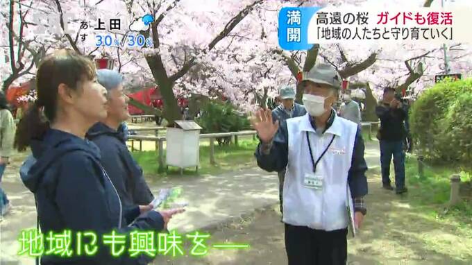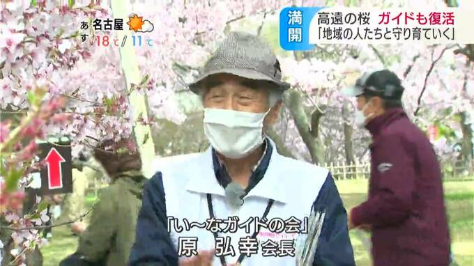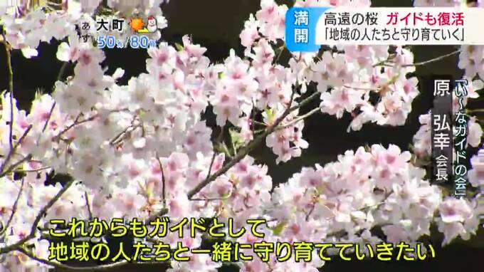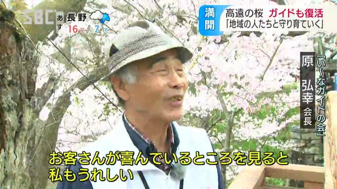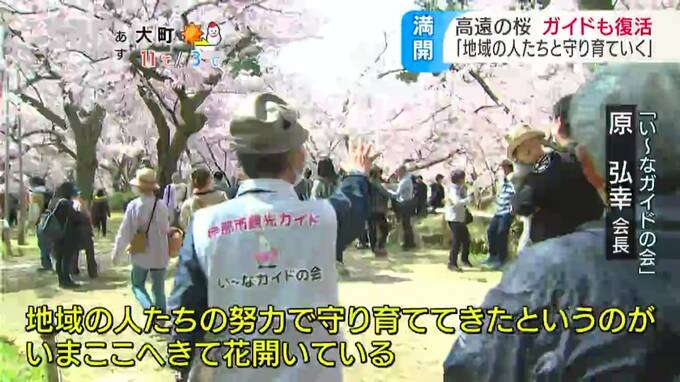 ■原さん「自分の目で見て桜を楽しみ、歴史を楽しみ地域のことを知ってほしい。地域の人たちの努力で守り育ててきたというのが、いまここへきて花開いている。これからもガイドとして地域の人たちと一緒に守り育てていきたい」