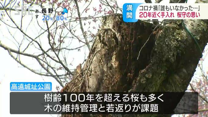 およそ150年前の明治初期から桜を植え始めたという高遠城址公園には、樹齢100年を超える桜も多く、木の維持管理とともに若返りが課題になっています。