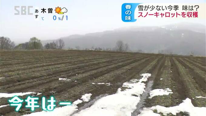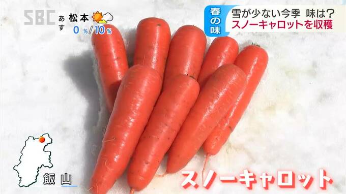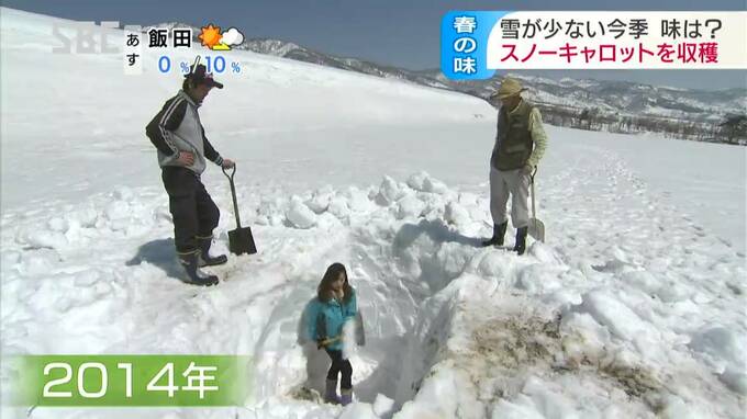 いつもならこの時期の飯山は、まだ1メートルほど雪が残り、スノーキャロットはその下の畑に隠れているのですが…
