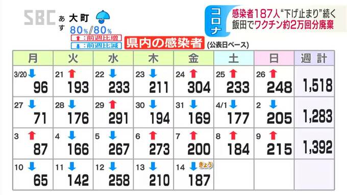 感染者の下げ止まりが続く中、飯田市ではワクチンの管理に不備があり、およそ2万回分が廃棄されていたことが分かりました。
