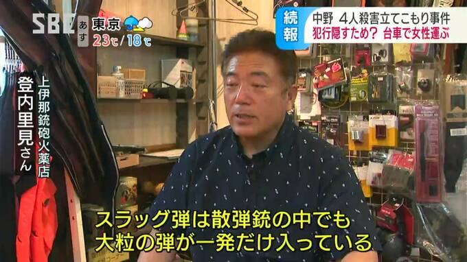 ■上伊那銃砲火薬店 登内里見さん 「スラッグ弾は散弾銃の中でも弾が一発だけ入っている。大粒のものが一発だけ入ってる殺傷能力の高い威力の高い弾」