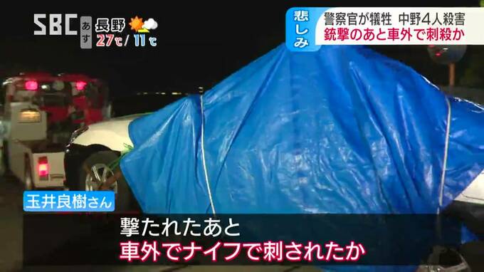 一方、もう1人の警察官玉井良樹(たまい・よしき)さんはパトカーの中で撃たれた後、車の外でナイフで刺されたとみられることが新たにわかりました。