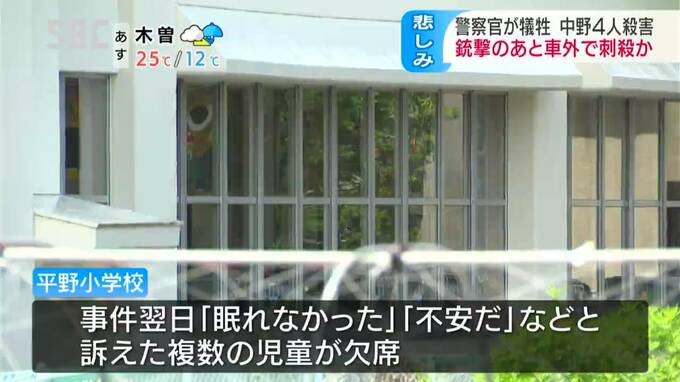 市の教育委員会などによりますと、事件翌日の26日、現場近くの平野(ひらの)小学校では、「眠れなかった」「不安だ」などと訴えた複数の児童が欠席したということです。