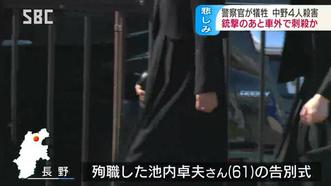中野市で男女4人が殺害された事件で、亡くなった2人の警察官のうち池内卓夫(いけうちたくお)さんの葬儀が31日、行われました。