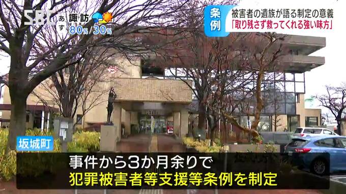 事件から3か月余りで町は犯罪被害者支援条例を制定。