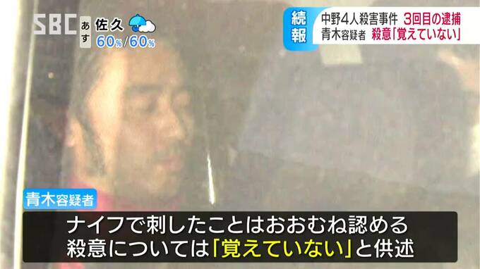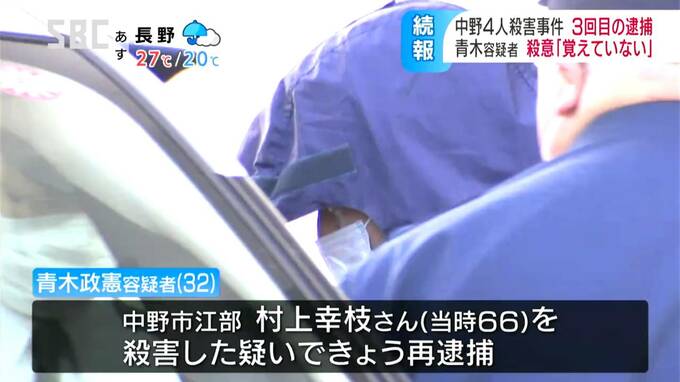 中野市で男女4人が殺害された事件で、警察は7日、警察官2人の殺害容疑で既に逮捕している男を、60代の女性を殺害した疑いで再逮捕しました。逮捕は3度目です。殺意については、「覚えていない」と供述しているということです。