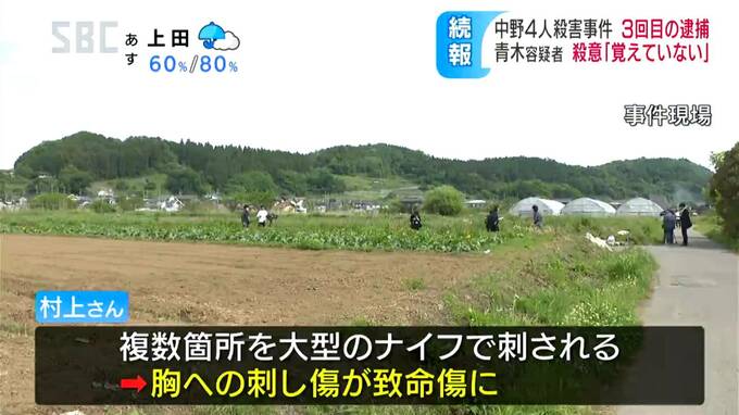 中野市で男女4人が殺害された事件で、県警は、60代の女性を刃物で殺害した疑いで青木政憲(あおき・まさのり)容疑者を再逮捕しました。