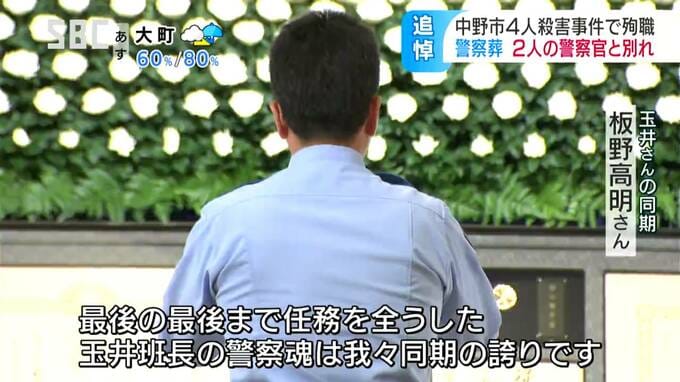 「最後の最後まで任務を全うした玉井班長の警察魂は我々同期の誇りです。君の尊い犠牲を無駄にしないためにも業務に邁進することをお約束します」
