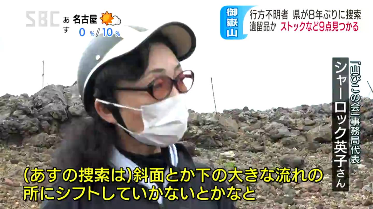 ■災害被害者の家族らでつくる「やまびこの会」事務局代表シャーロック英子さん 「もう9年だから、(遺留品が)まだあるんだなと期待をする。(あすの捜索は)斜面とか下の大きな流れの所シフトしていかないとかなと」