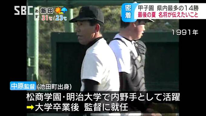 池田町出身、松商学園、明治大学で内野手として活躍した中原監督は、大学卒業後すぐに母校の指揮をとることに。