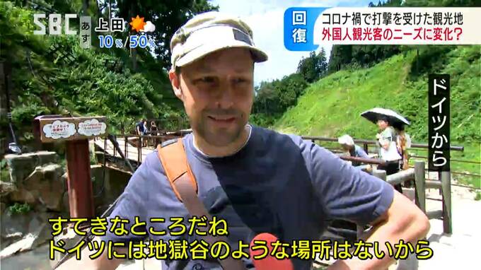 ドイツから: 「初めて日本に来て初めて地獄谷に来た」 「素敵なところだね。ドイツには地獄谷のような場所はないから」