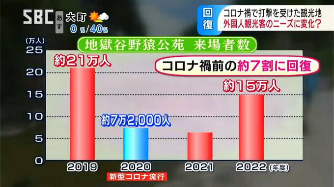 野猿公苑の来場者数は新型コロナの感染拡大で一時、3分の1にまで減少。
