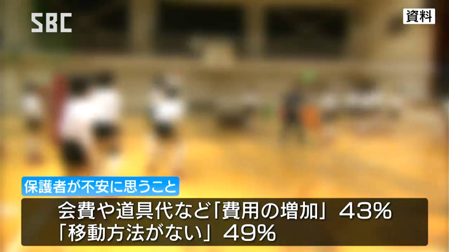 一方、不安に思うことについては、保護者の43%が会費や道具代などの「費用の増加」をあげたほか、「移動方法がない」との回答も5割近くに上りました。