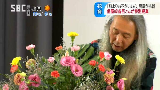 須坂市の小学校で、華道家、假屋崎省吾(かりやざき・しょうご)さんによる特別授業が行われました。