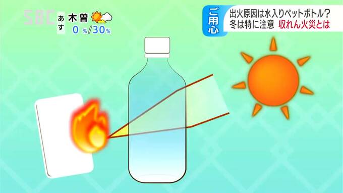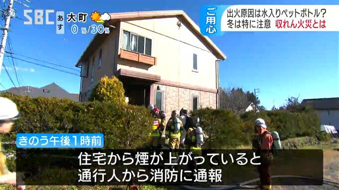 警察によりますと、玄関先には水の入ったペットボトルが置かれていて、太陽の光がペットボトルを通じて一点に集まったことで、近くにあったものが熱せられ、火が出たとみられています。