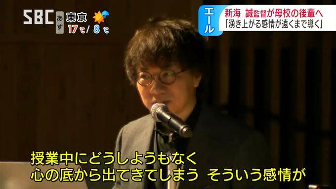 佐久市の野沢北高校の生徒会が、小海町出身で卒業生の新海誠監督を招いた講演会を開きました。