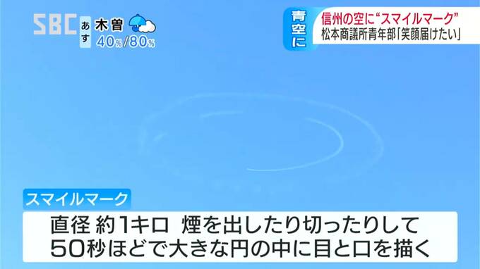 今回は、中野市をはじめ、須坂、長野、大町、安曇野、諏訪、そして松本市と合わせて10か所の上空にスマイルマークを描くという壮大な試みです。