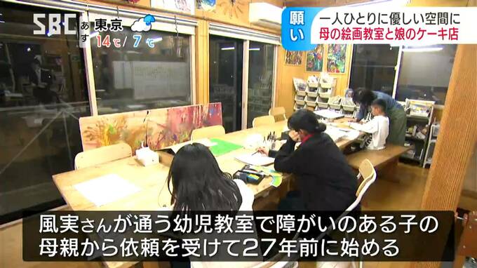 風実さんが通う幼児教室で、障がいのある子どもの母親から絵を習いたいと言われたことがきっかけで、27年前に始めました。