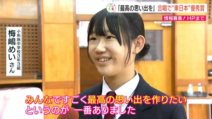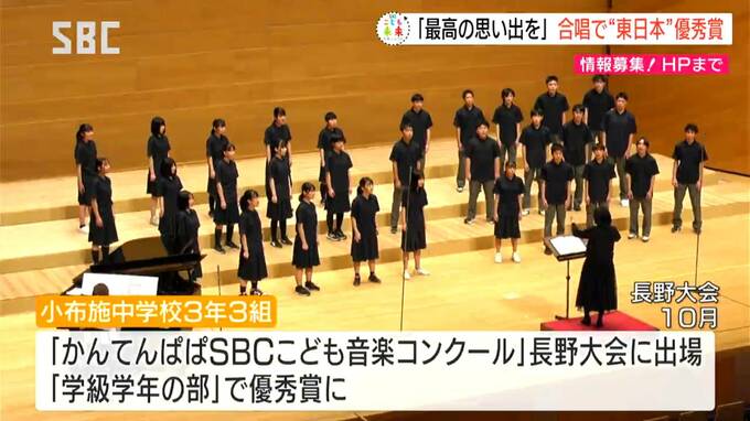 今回はクラスで音楽コンクールに出場し、合唱で東日本の優秀賞に輝いた小布施町の中学生を紹介します。