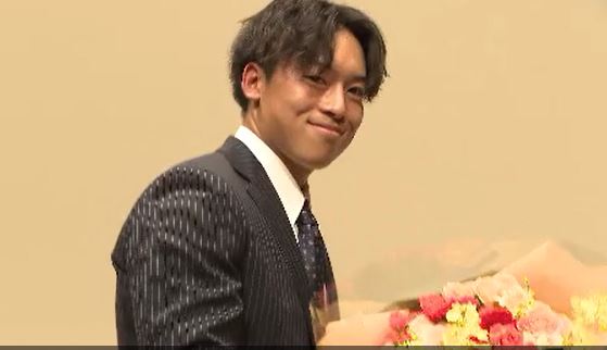 仲間に見守られる中、宮澤投手は鋭いまなざしで決意を述べ、ルーキーイヤーの活躍を誓っていました。