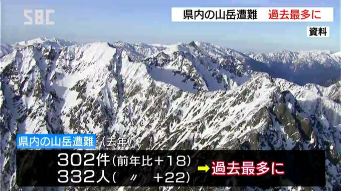 長野県内の山岳遭難が過去最多に・2023年は302件「体力や経験不足が増加」 2024年1月6日(土) 13:34 国内 県内で2023年に発生した山岳遭難は302件と過去最多で、中高年を中心に体力や経験不足による遭難が増える傾向にあります。県警によりますと2023年の山岳遭難件数は前の年より18件多い302件、遭難者は22人多い332人…