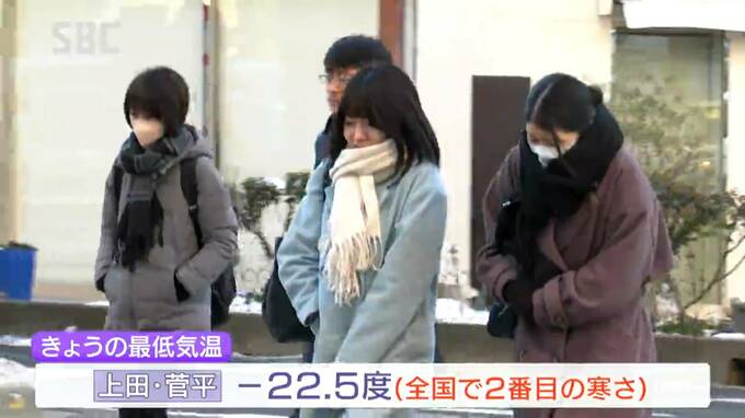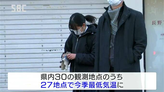 また上田が氷点下8.5度、松本と諏訪が氷点下7.9度、飯田が氷点下6.6度など県内30の観測地点のうち27地点で今シーズンの最低気温を観測しました。