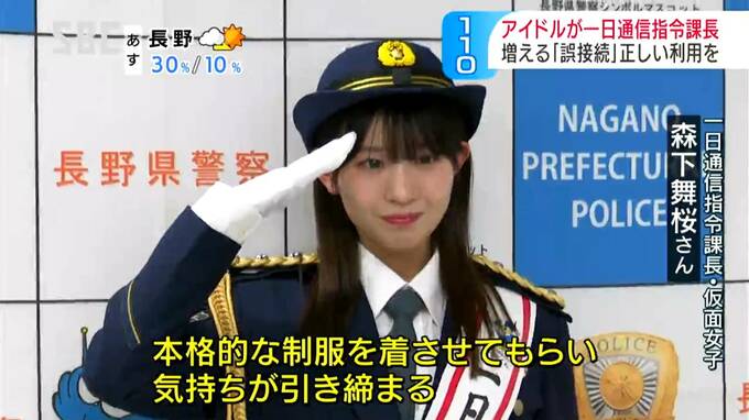 アイドルグループ「仮面女子」のメンバーで安曇野市出身の森下舞桜(もりした・まお)さんが、長野県警の一日通信指令課長に任命されました。