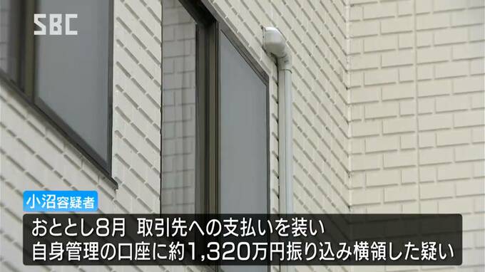 県警によりますと、小沼容疑者は2022年8月、取引先への支払いを装い会社の預金1,320万円を自分が管理する口座に振り込み横領した疑いです。