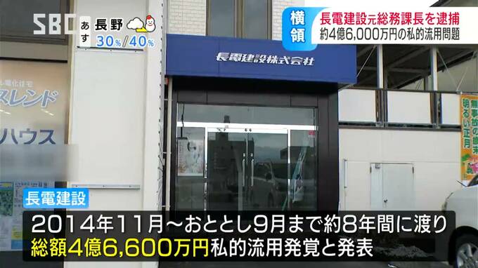 長野市の長電建設で元総務課長を務めていた男が、業務上横領の疑いで逮捕されました。