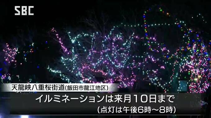 飯田市龍江地区のイルミネーションは、2月10日まで毎日午後6時~8時まで行われています。