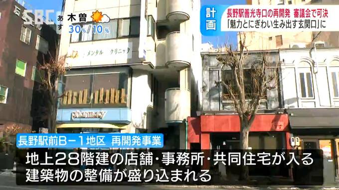長野駅善光寺口の再開発事業について、市の都市計画審議会で8日、計画案が可決されました。年度内に都市計画が決定される予定です。長野駅前の末広町(すえひろちょう)交差点近く。市が「魅力とにぎわいを生み出…