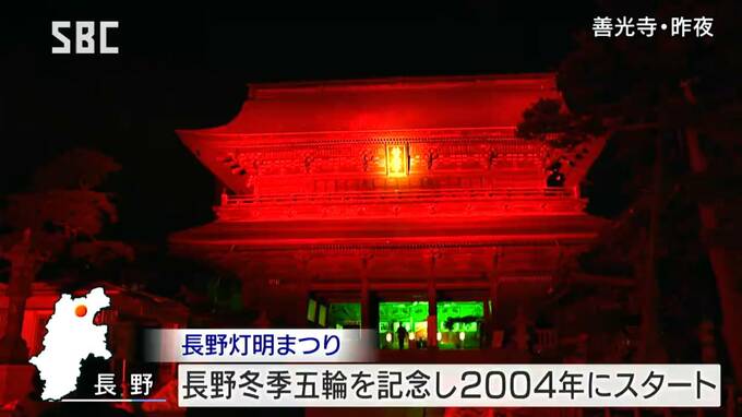 長野灯明まつりは、1998年の冬季オリンピックの開催を記念して2004年から始まり、善光寺をライトアップするなどして、平和への願いを発信しています。