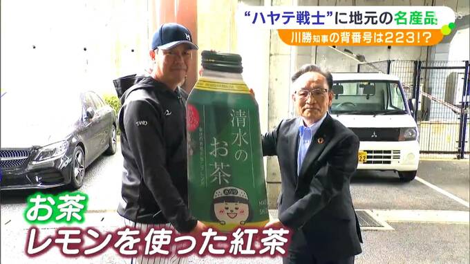 2024シーズンからNPBファームリーグに参戦する「くふうハヤテベンチャーズ静岡」。3月15日の開幕戦に向けて練習に励む選手たちを後押ししようと贈られたのは、JAしみずが売り出し中の「お茶」や「レモンを使った紅茶」です。