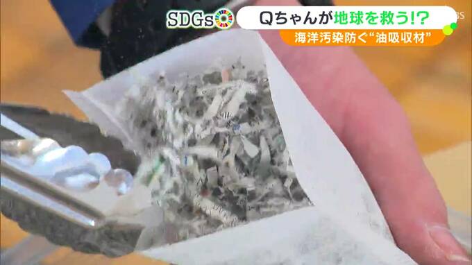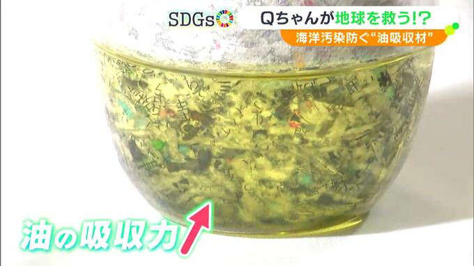 そこで、生徒たちが開発したのが油吸収材「Qちゃん」。特に力を入れたのは油の吸収力をアップさせることです。