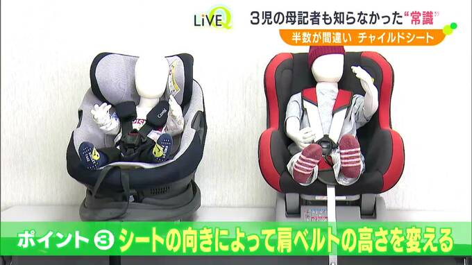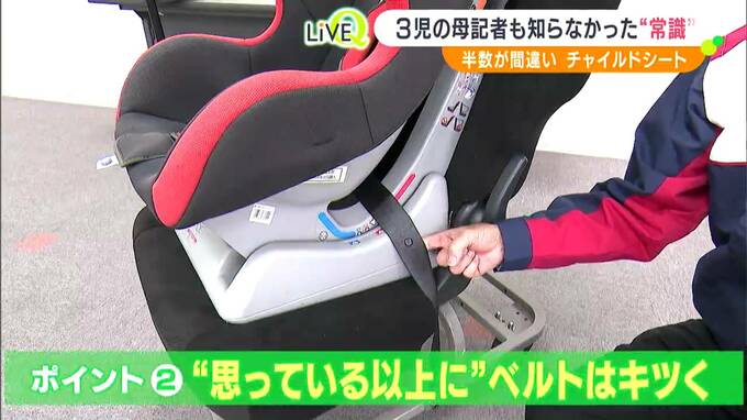 6歳未満の子どもを車に乗せる時には取り付けが義務となっているチャイルドシートですが、実に半数が正しく使えていないことがデータで明らかになっています。一番下の5歳の子をチャイルドシートに乗せている記者も、これまでの使い方が十分ではなかったと見直すことになりました。