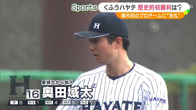 くふうハヤテの先発は、2024年春大学卒業の奥田域太。毎回ランナーを背負いながらも粘りのピッチングで、6回を1失点におさえマウンドをおります。