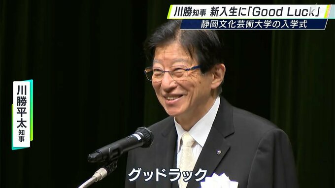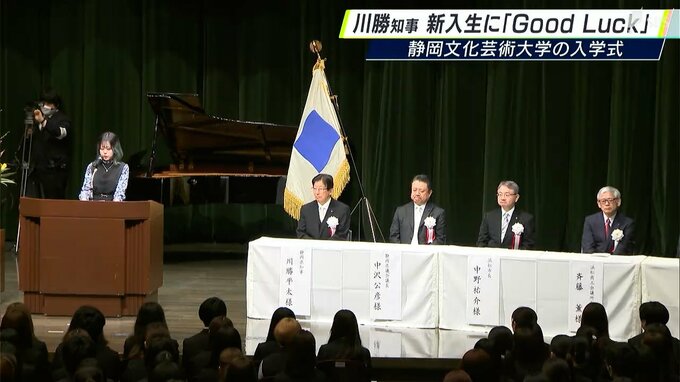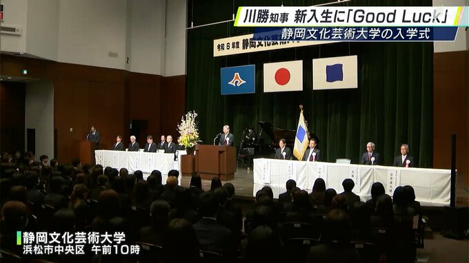 浜松市にキャンパスを置く静岡文化芸術大学で4月5日、入学式が行われました。かつて学長を務めた川勝知事が出席し、新入生に「グッドラック」とエールを送りました。